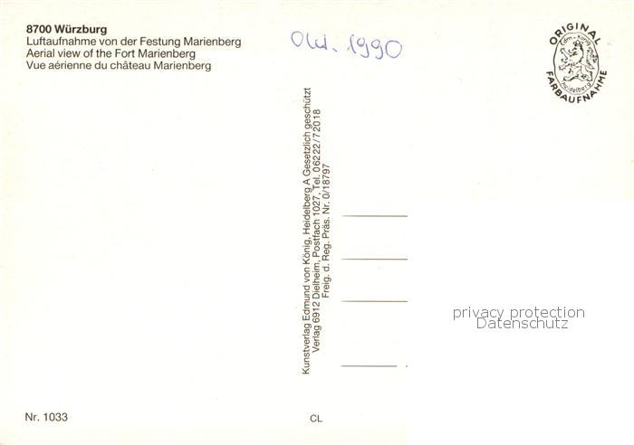 73776295 Wuerzburg Fliegeraufnahme Festung Marienberg postalisch nicht gelaufen Erhaltung siehe scans [LiesaD40] KatCode: 11110009663000