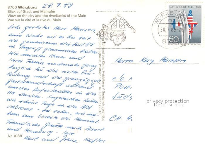 73161887 alte Postkarte Wuerzburg Mainufer postalisch gelaufen Erhaltung siehe scans [LiesaD40] KatCode: 11110009663000