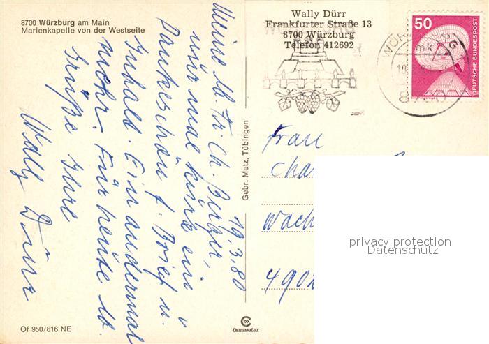 73126774 alte Postkarte Wuerzburg Marienkapelle Markt postalisch gelaufen Erhaltung siehe scans [KathaD81] KatCode: 11110009663000