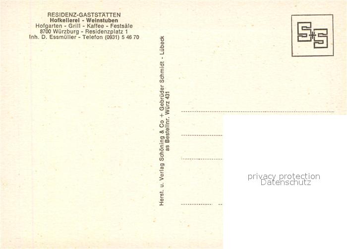 72987991 Wuerzburg Residenz Gaststaetten Hofkellerei Weinstuben postalisch nicht gelaufen Erhaltung siehe scans [FriedD77] KatCode: 11110009663000