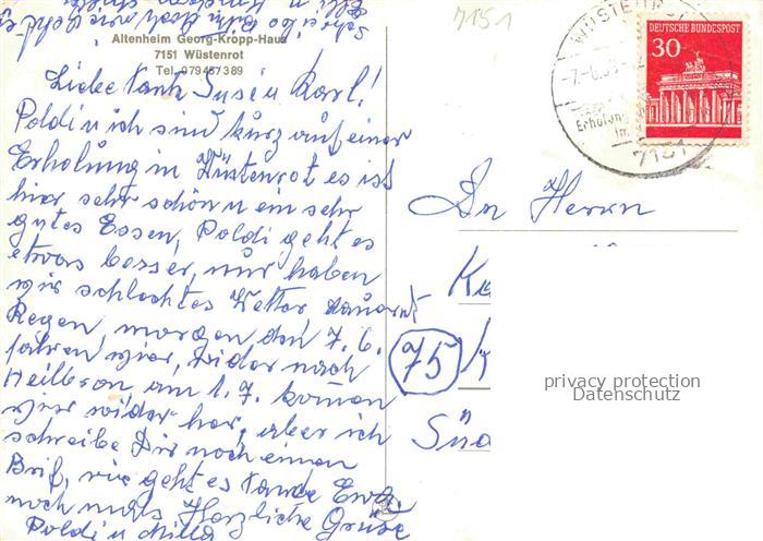 74053303 alte Postkarte Wuestenrot Altenheim Georg Kropp Haus postalisch gelaufen Erhaltung siehe scans [WerneD78] KatCode: 11110008125107
