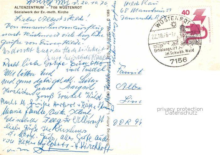72673007 alte Postkarte Wuestenrot Altenzentrum postalisch gelaufen Erhaltung siehe scans [AndreD76] KatCode: 11110008125107