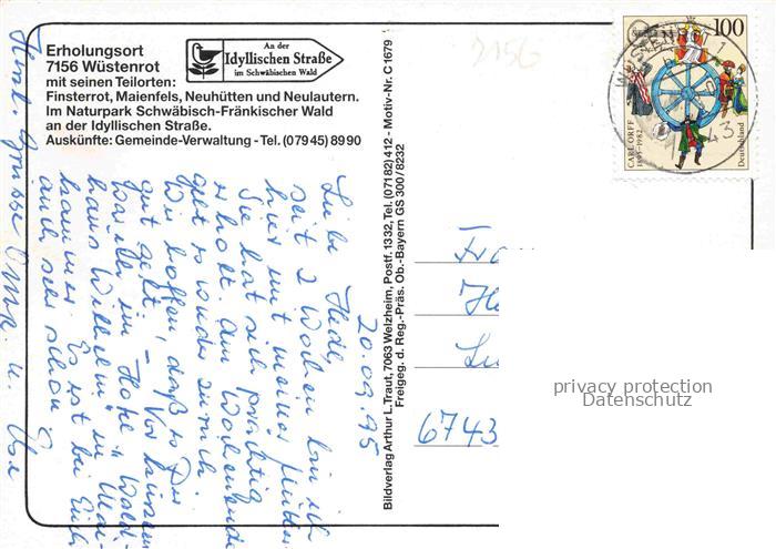 74053217 alte Postkarte Wuestenrot Fliegeraufnahme postalisch gelaufen Erhaltung siehe scans [WerneD78] KatCode: 11110008125107