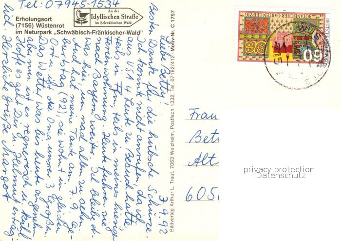 73246934 alte Postkarte Wuestenrot Freischach Maienfels Steinknickle Rathaus Kreuzle Burgfriedenhalle postalisch gelaufen Erhaltung siehe scans [KathaD81] KatCode: 11110008125107