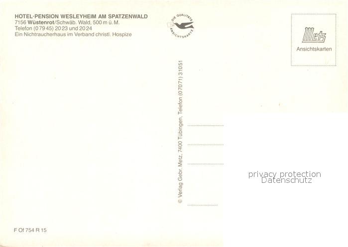 73664785 Wuestenrot Hotel Pension Wesleyheim am Spatzenwald Gastraeume postalisch nicht gelaufen Erhaltung siehe scans [WerneD78] KatCode: 11110008125107