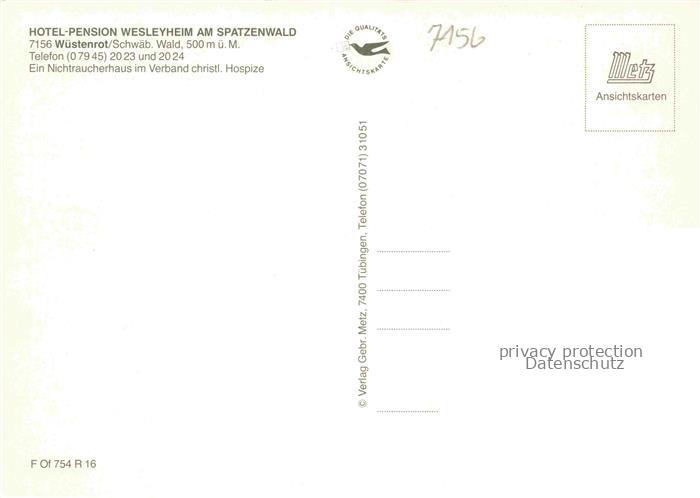 74053287 Wuestenrot Hotel Pension Wesleyheim am Spatzenwald Waldhaus Haupthaus Gaststube postalisch nicht gelaufen Erhaltung siehe scans [WerneD78] KatCode: 11110008125107