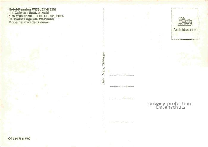 74052862 Wuestenrot Hotel Wesley Heim mit Cafe postalisch nicht gelaufen Erhaltung siehe scans [WerneD78] KatCode: 11110008125107