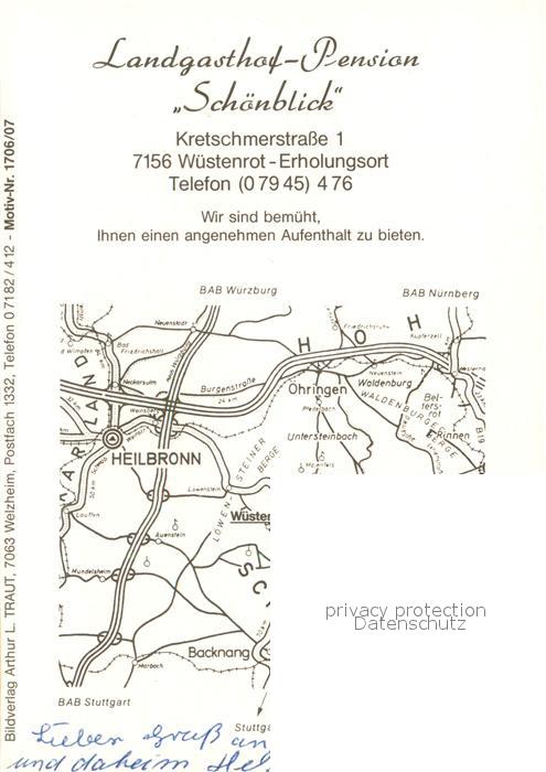 73570128 Wuestenrot Landgasthof Pension Schoenblick postalisch nicht gelaufen Werbekarte (keine Postkarte) Erhaltung siehe scans [FriedD77] KatCode: 11110008125107