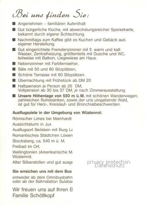 73570092 Wuestenrot Pension Schoenblick Gastraum Terrasse Bodenschach Kirche postalisch nicht gelaufen Werbekarte (keine Postkarte) Erhaltung siehe scans [FriedD77] KatCode: 11110008125107