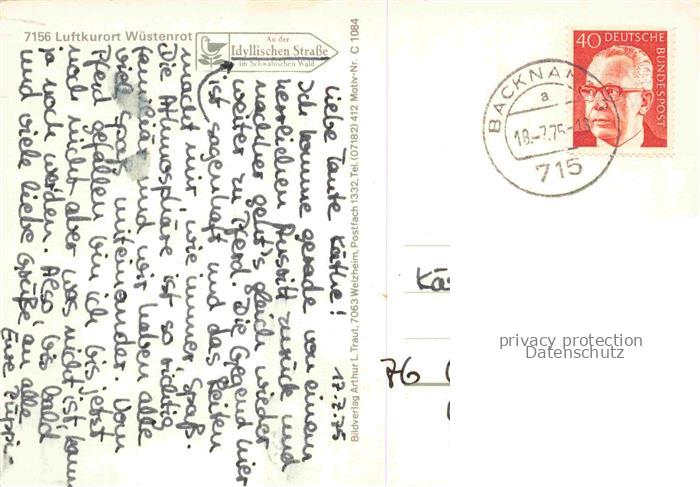 74052690 alte Postkarte Wuestenrot Steinkirche Burg Maienfels Cafe Waldeck Schwaeb Wald Halle Schwimbad Silberstollen Finsterroter See Wildpark postalisch gelaufen Erhaltung siehe scans [WerneD78] KatCode: 11110008125107