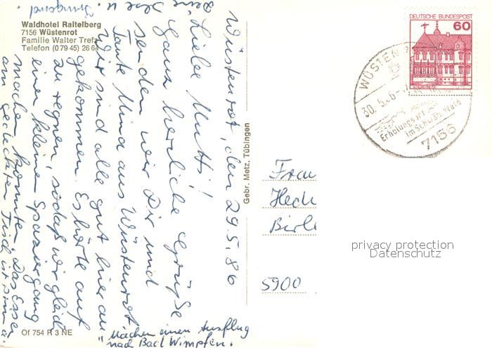 73664786 alte Postkarte Wuestenrot Waldhotel Raitelberg Gastraeume Terrasse postalisch gelaufen Erhaltung siehe scans [WerneD78] KatCode: 11110008125107