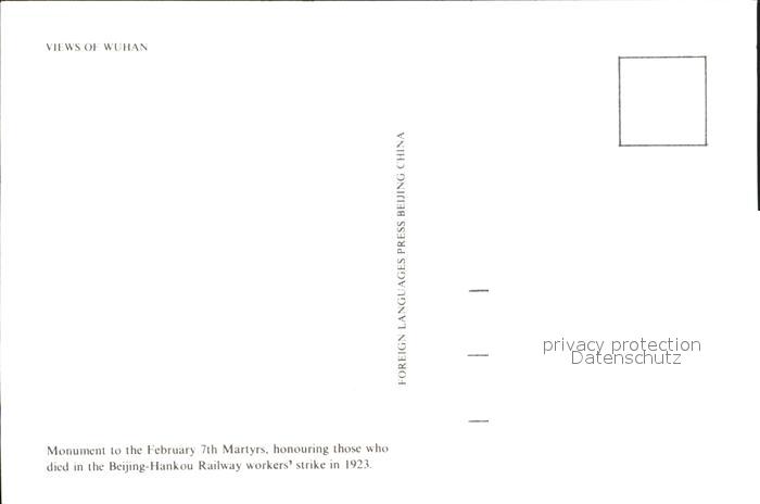 WUHAN Monument postalisch nicht gelaufen Erhaltung siehe scans