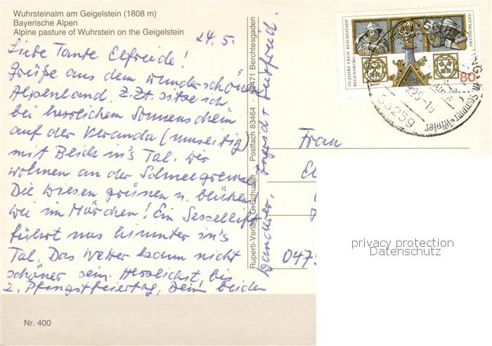73784219 Wuhrsteinalm 1808m Schleching Panorama Geigelstein Watzmanngebiet Hochgern Achentalblick postalisch gelaufen Erhaltung siehe scans [WerneD78] alte Postkarte Wern Katcode 11110009189141