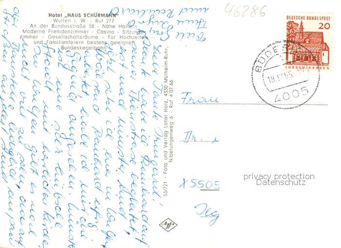 73858290 alte Postkarte Wulfen Dorsten Hotel Haus Schuermann postalisch gelaufen Erhaltung siehe scans [FriedD77] KatCode: 11110005562012
