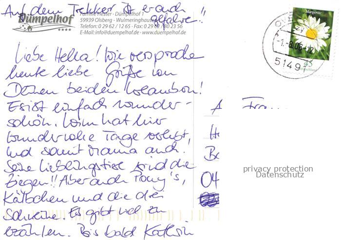 74132430 alte Postkarte Wulmeringhausen Olsberg Hochsauerlandkreis NRW Ferien auf dem Duemplehof Ponyreiten postalisch gelaufen Erhaltung siehe scans [FriedD77] KatCode: 11110005958036