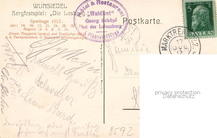 73808064 alte Postkarte Wunsiedel Bergfestspiel Die Losburg Ganna weissagt die Geschicke des heiligen Haines postalisch gelaufen Erhaltung siehe scans [FriedD77] KatCode: 11110009479169