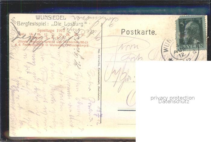 72142952 alte Postkarte Wunsiedel Bergfestspiel die Losburg postalisch gelaufen Erhaltung siehe scans KatCode: 11110009479169