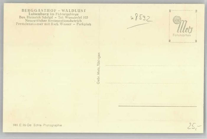 40235884 Wunsiedel Berggasthof Waldlust * 1921-1965 KatCode 11110009479169