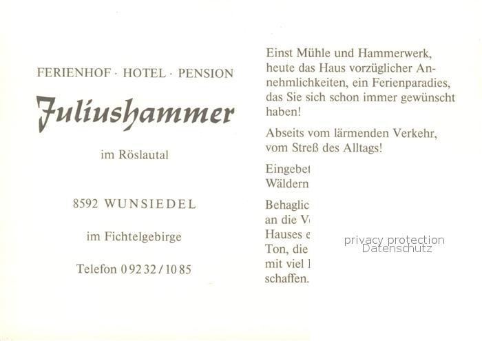 73197141 Wunsiedel Ferienhof Hotel Pension Juliushammer im Roeslautal Fichtelgebirge postalisch nicht gelaufen Werbekarte (keine Postkarte) Erhaltung siehe scans [FriedD77] KatCode: 11110009479169