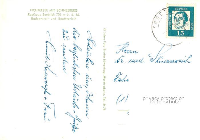 73767849 alte Postkarte Wunsiedel Fichtelsee mit Schneeberg Rasthaus Seeblick Badeanstalt Bootsverleih postalisch gelaufen Erhaltung siehe scans [FriedD77] KatCode: 11110009479169