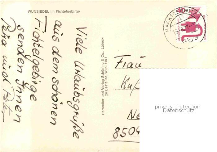 72764378 alte Postkarte Wunsiedel Gesamtansicht postalisch gelaufen Erhaltung siehe scans [AndreD76] KatCode: 11110009479169