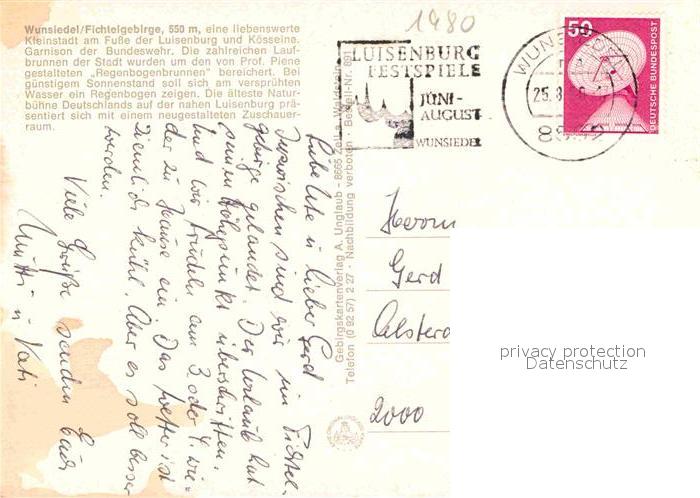 72889090 alte Postkarte Wunsiedel Regenbogenbrunnen Koppetentor Naturbuehne Luisenburg Bundeswehr Kasernen postalisch gelaufen Erhaltung siehe scans [LiesaD40] KatCode: 11110009479169