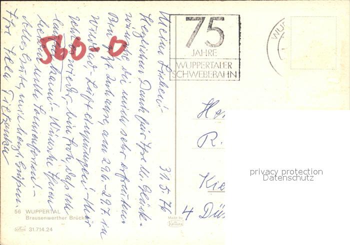 72138205 alte Postkarte WUPPERTAL NRW Brausenwerther Bruecke Schwebebahn postalisch gelaufen Erhaltung siehe scans KatCode: 11110005124000