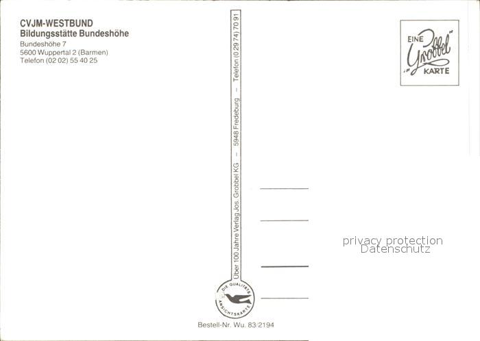 72549291 WUPPERTAL NRW CVJM-Westbund postalisch nicht gelaufen Erhaltung siehe scans [LiesaD40 kv021box] KatCode: 11110005124000