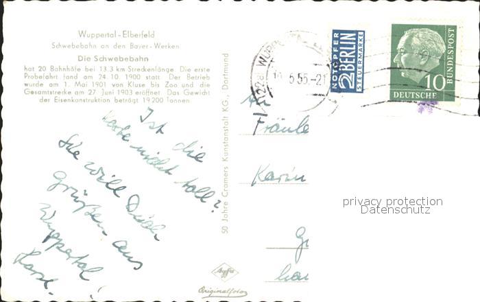 72312816 alte Postkarte WUPPERTAL NRW Die Schwebebahn bei Nacht postalisch gelaufen Erhaltung siehe scans KatCode: 11110005124000
