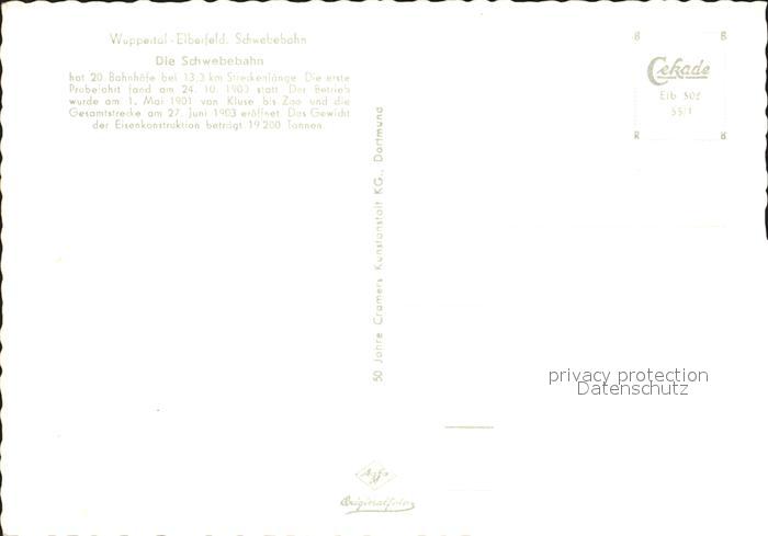 72107009 WUPPERTAL NRW Die Schwebebahn ueber der Wupper postalisch nicht gelaufen Erhaltung siehe scans KatCode: 11110005124000