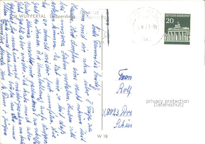 72369845 alte Postkarte WUPPERTAL NRW Doeppersberg postalisch gelaufen Erhaltung siehe scans KatCode: 11110005124000