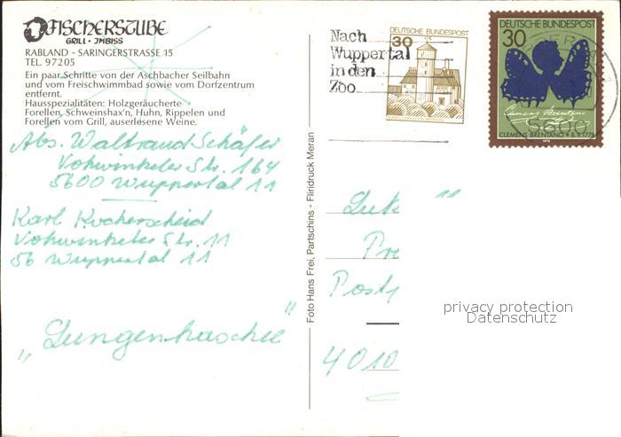 71993108 alte Postkarte WUPPERTAL NRW Fischerstube Grill Imbiss postalisch gelaufen Erhaltung siehe scans KatCode: 11110005124000
