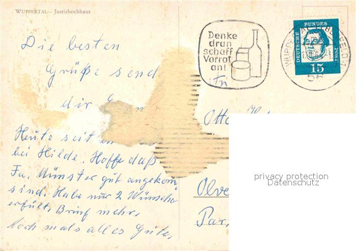 72684032 alte Postkarte WUPPERTAL NRW Justizhochhaus Schwebebahn postalisch gelaufen Erhaltung siehe scans [AndreD76] KatCode: 11110005124000