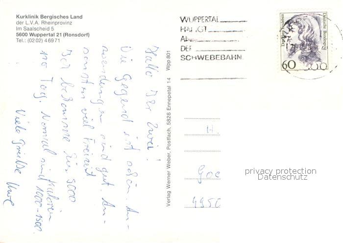 73720729 WUPPERTAL NRW Kurklinik Bergisches Land Aussenansicht postalisch gelaufen Erhaltung siehe scans [LiesaD40] alte Postkarte Lies Katcode 11110005124000