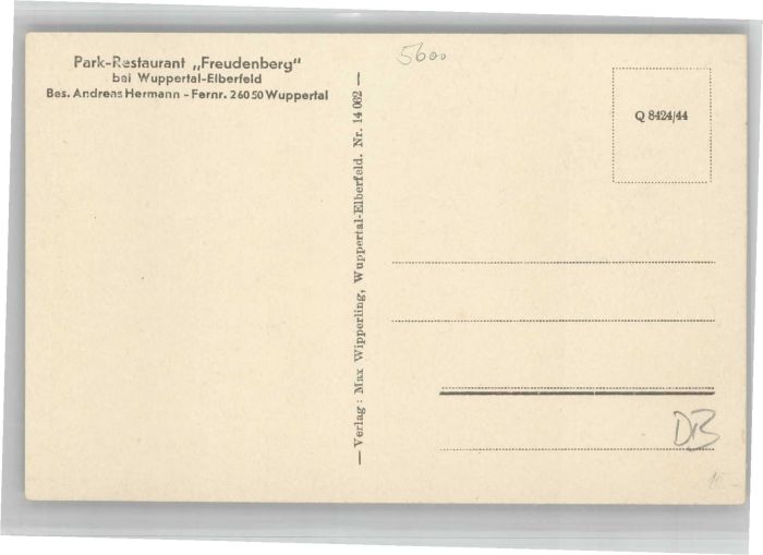 40689227 WUPPERTAL NRW Park Restaurant postalisch nicht gelaufen Alte Ansichtskarte Postkarte Katcode 11110005124000