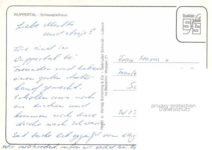 72848844 WUPPERTAL NRW Schauspielhaus Schwebebahn postalisch nicht gelaufen Erhaltung siehe scans [FriedD77] KatCode: 11110005124000