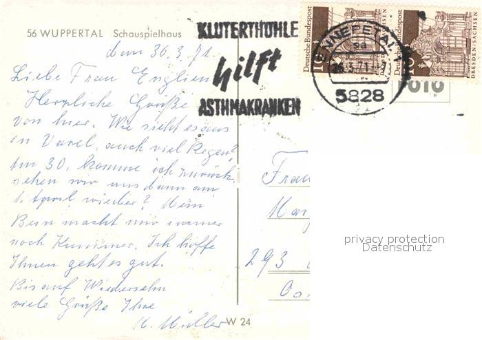 72758110 alte Postkarte WUPPERTAL NRW Schauspielhaus Schwebebahn postalisch gelaufen Erhaltung siehe scans [LiesaD40] KatCode: 11110005124000