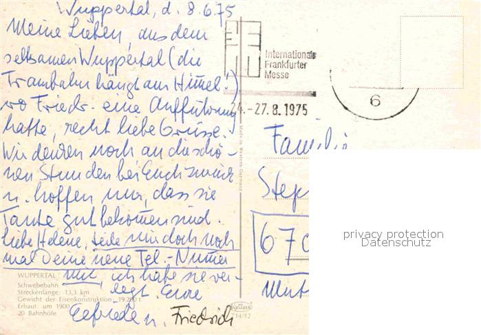 72714437 alte Postkarte WUPPERTAL NRW Schwebebahn postalisch gelaufen Erhaltung siehe scans [LiesaD40] KatCode: 11110005124000