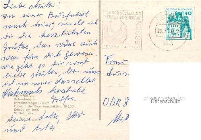 73833848 WUPPERTAL NRW Schwebebahn postalisch gelaufen Erhaltung siehe scans [FriedD77] alte Postkarte Frie Katcode 11110005124000