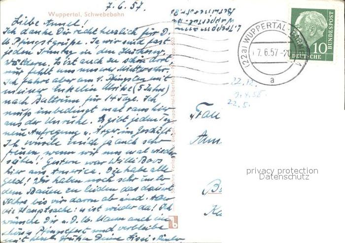 72227551 alte Postkarte WUPPERTAL NRW Schwebebahn postalisch gelaufen Erhaltung siehe scans KatCode: 11110005124000