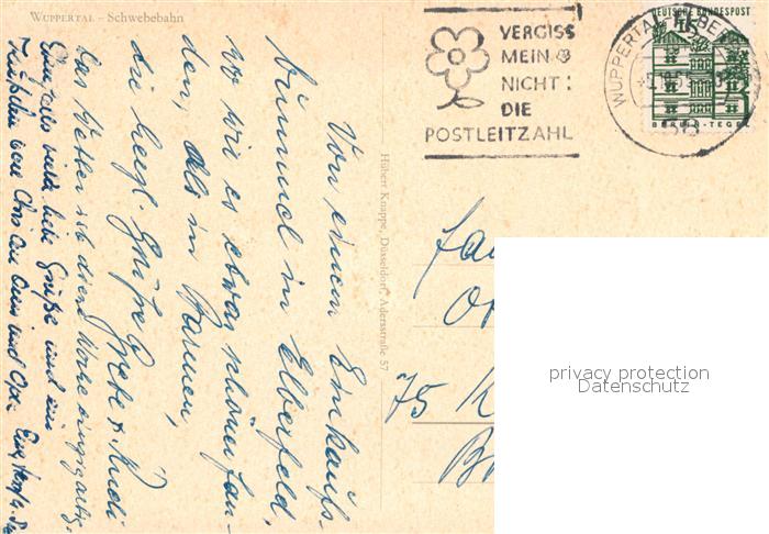 72999597 alte Postkarte WUPPERTAL NRW Schwebebahn postalisch gelaufen Erhaltung siehe scans [WerneD78] KatCode: 11110005124000