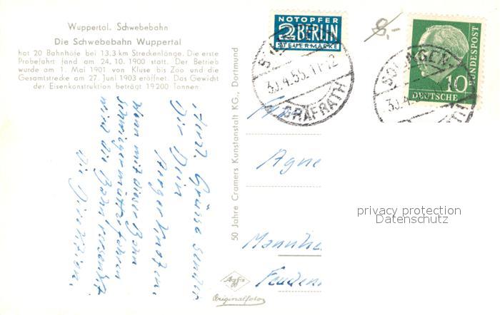 43350906 WUPPERTAL NRW Schwebebahn postalisch gelaufen Erhaltung siehe scans [KathaD81] alte Postkarte Kath Katcode 11110005124000
