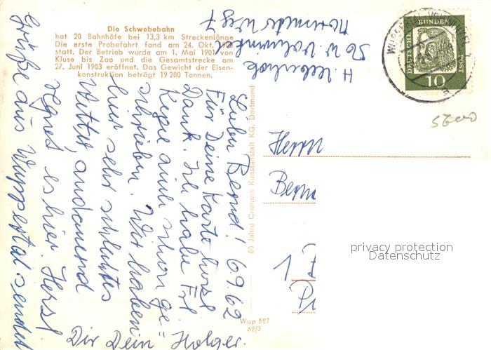 43351302 WUPPERTAL NRW Schwebebahn Adlerbruecke postalisch gelaufen Erhaltung siehe scans [KathaD81] alte Postkarte Kath Katcode 11110005124000