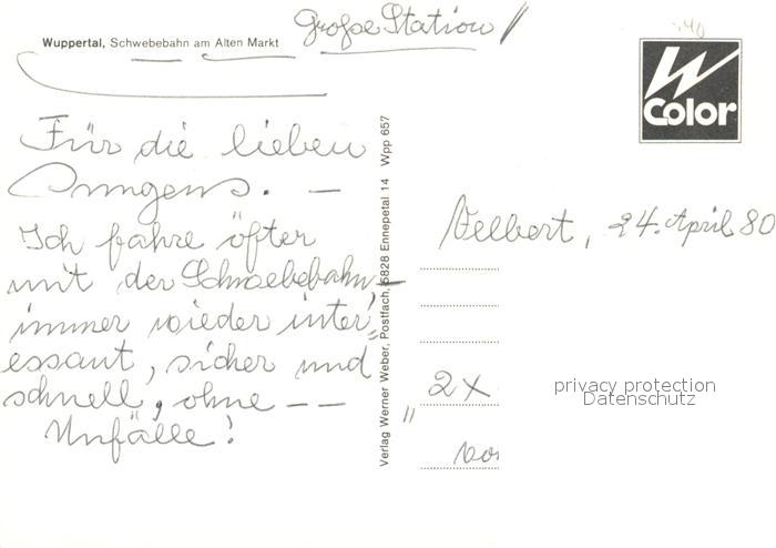 73244656 WUPPERTAL NRW Schwebebahn Alter-Markt postalisch nicht gelaufen Erhaltung siehe scans [LiesaD40] KatCode: 11110005124000
