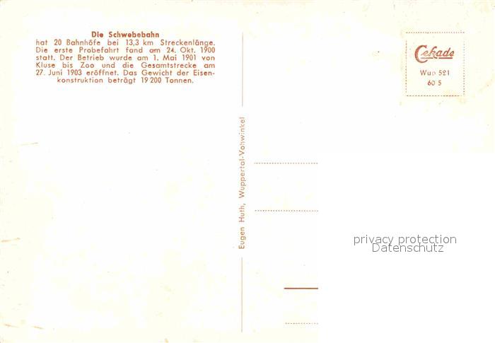 72616620 WUPPERTAL NRW Schwebebahn Sonnborn Hallenschwimmbad Hochhaus Glanzstoff AG postalisch nicht gelaufen Erhaltung siehe scans [FriedD77] KatCode: 11110005124000