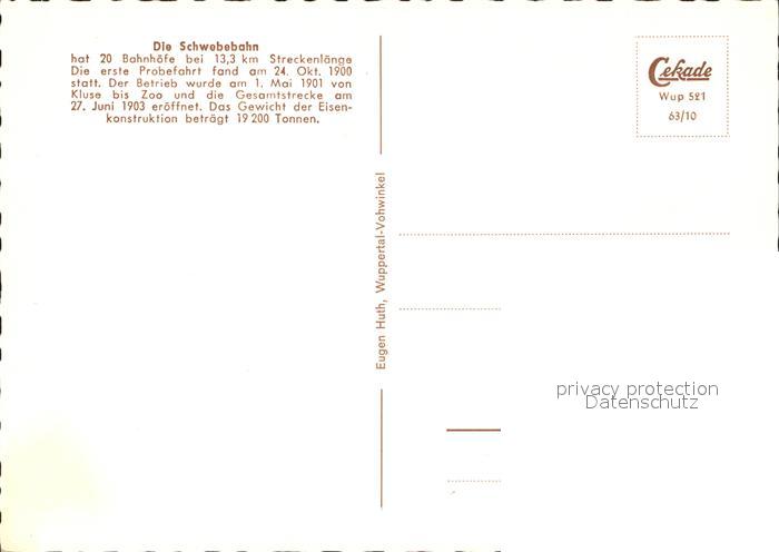 72597154 WUPPERTAL NRW Schwebebahn Sonnborn Neues Schwimmbad Glanzstoff Hochhaus Hoehne postalisch nicht gelaufen Erhaltung siehe scans [WerneD78] KatCode: 11110005124000