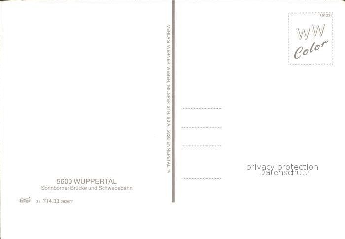 72227552 WUPPERTAL NRW Sonnborner Bruecke Schwebebahn postalisch nicht gelaufen Erhaltung siehe scans KatCode: 11110005124000