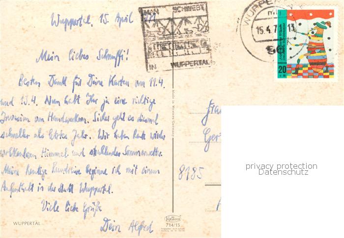 73860392 WUPPERTAL NRW Stadtzentrum postalisch gelaufen Fliegeraufnahme Erhaltung siehe scans [FriedD77] Fliegeraufnahme alte Postkarte Frie Katcode 11110005124000