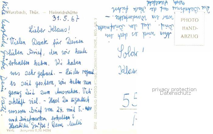 72645833 Wurzach Thueringen Henrichshuette postalisch nicht gelaufen Erhaltung siehe scans [LiesaD40] KatCode: 11110009187170