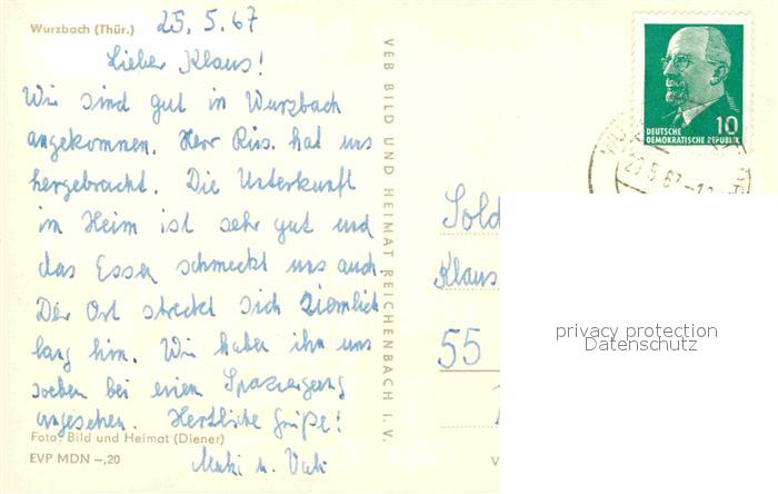 72645831 alte Postkarte Wurzach Thueringen postalisch gelaufen Erhaltung siehe scans [LiesaD40] KatCode: 11110009187170